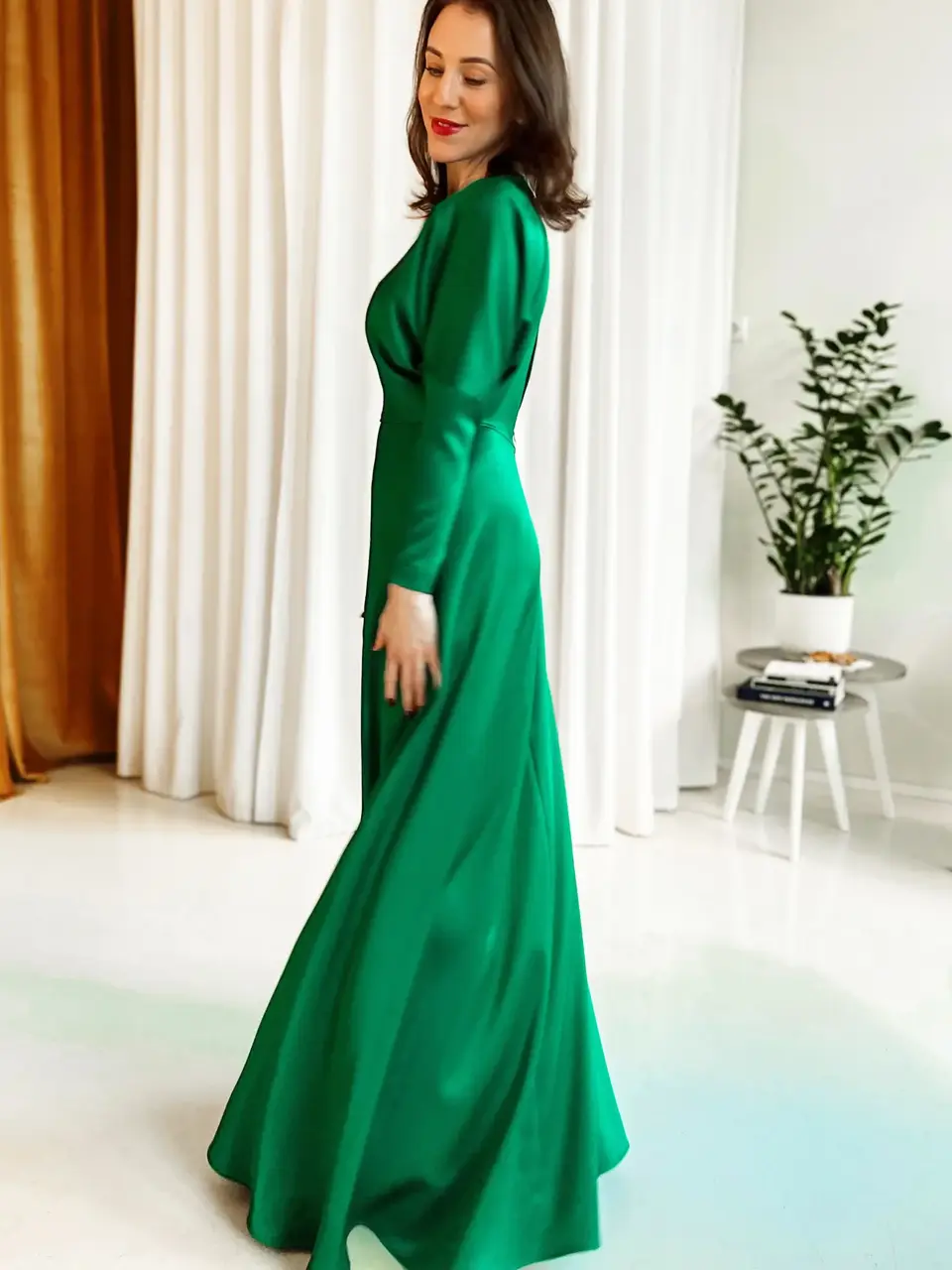 Satin dress is an elegant and timelessly stylish choice for any formal event. The dress is made of a softly shiny satin fabric that drapes well. Long zipped sleeves and a minimalist top create a refined and balanced look. The standout detail is the long slit, which adds a bold accent to the dress and allows for comfortable movement. The streamlined cut of the dress emphasizes the figure and is perfect for both formal and formal events.