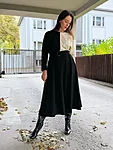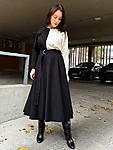 Modernne ja ajatu color block kleit, mis ühendab kaks harmoonilist toon. Minimalistlik lõige, pikad varrukad ja reguleeritav D-rõngaga vöö rõhutavad naiselikkust, samas kui kontrastne kahetooniline disain lisab arhitektuurset elegantsi.