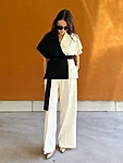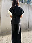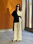 - Jakk: laia kraega, vabalt langev siluett, mida saab reguleerida vööga. Lühikesed, kergelt avatud varrukad annavad kaasaegse ja kerge ilme.