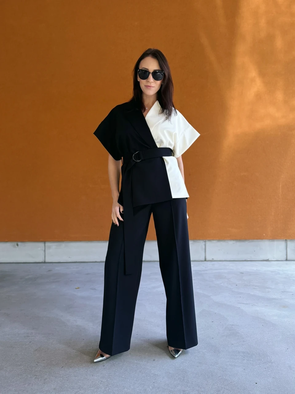 Elegantne ja ajatu kaheosaline komplekt, mis ühendab minimalistliku disaini ja maksimaalse mugavuse. Kostüüm on valmistatud kõrgekvaliteedilisest wool twill kangast, mis hoiab vormi ning kortsub minimaalselt – ideaalne valik nii tööpäevaks kui ka pidulikumateks sündmusteks.