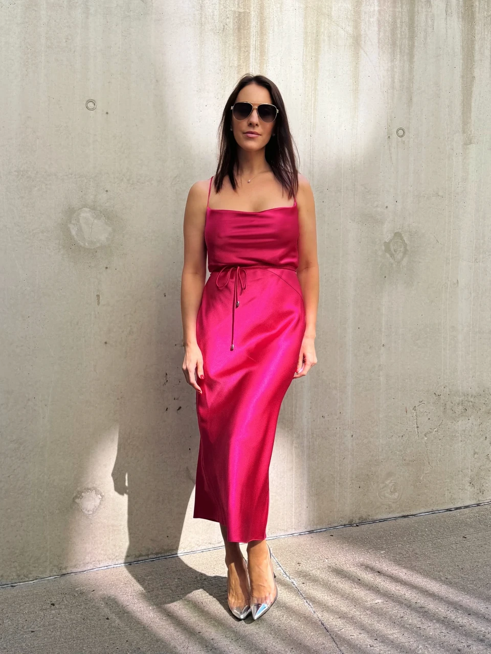 Luksuslikult pehme ja kaunilt langev satiinkleit, mis lisab igale kandjale naiselikku elegantsi ja ajatut stiili. Peenikesed õlapaelad, figuuri järgiva lõike ja vöökohal seotava paelaga detail loovad kauni silueti, samal ajal kui siidine materjal tagab mugavuse terve päeva ja õhtu vältel. Sobib ideaalselt nii pidulikeks sündmusteks kui ka šikiks igapäevaseks stiiliks.
