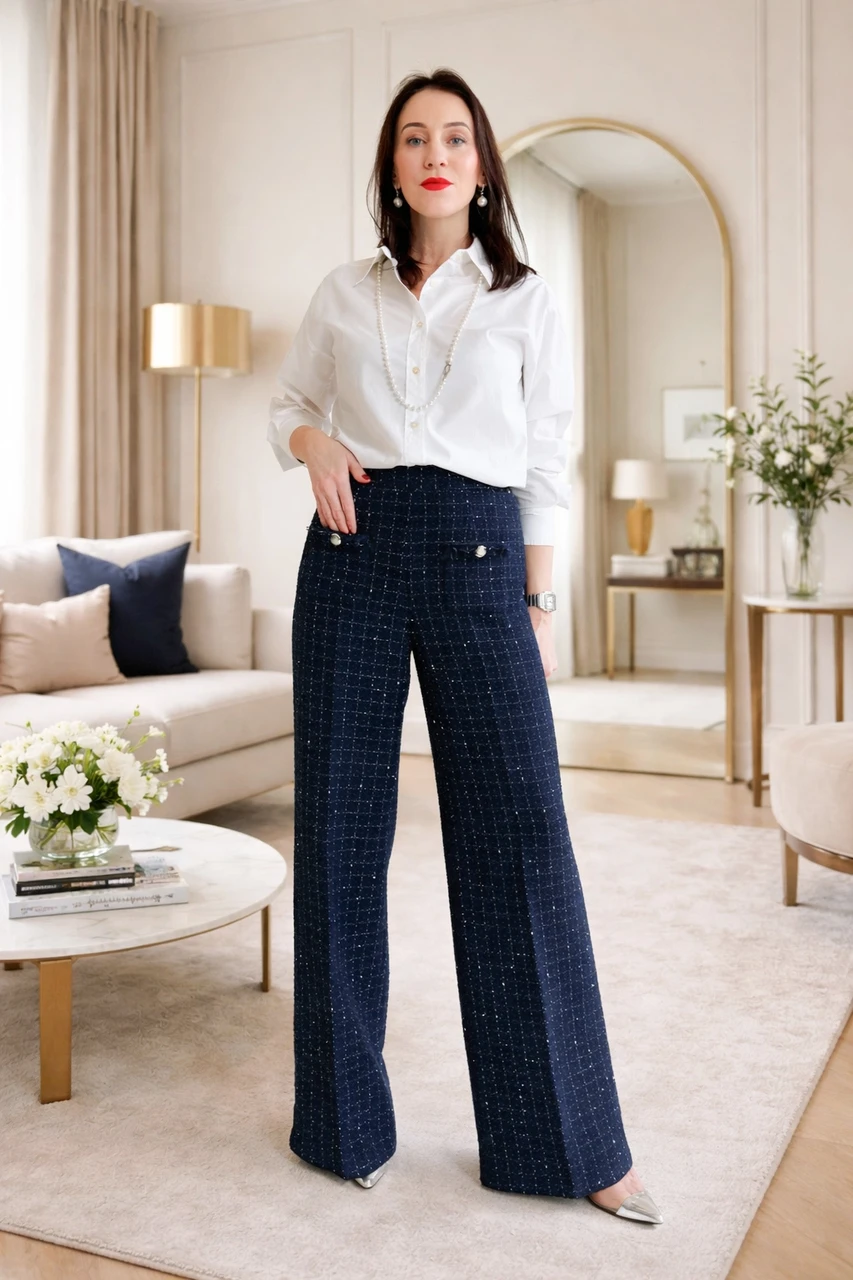 Ajatu siluett ja hoolikalt läbimõeldud detailid loovad püksid, mis sobivad nii igapäevaseks kandmiseks kui ka elegantsemaks puhuks. Lai säär annab liikumisvabaduse ja voolava joone, samal ajal kui täpne lõige hoiab vormi ka pika päeva jooksul.